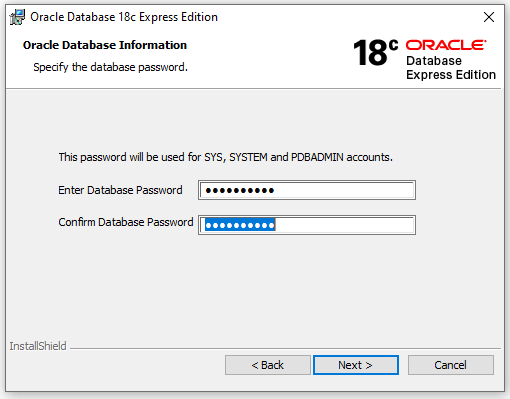 The first steps are pretty basically installation steps, just run the setup and click next until you come to the following screen. Here you will enter the password for the admin accounts, so choose this carefully: