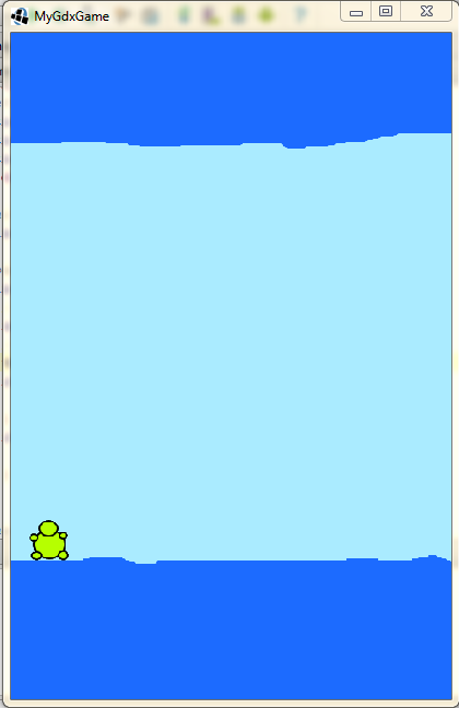 public GameScreen(MyGdxGame game) { //assigns the game we passed to the placeholder this.game = game; //creates the camera camera = new OrthographicCamera(); //Sets the screen to be 800 width by 480 height camera.setToOrtho(false, 480, 800); //very important, lets us use the Input methods! Gdx.input.setInputProcessor(this); } @Override public void render(float deltaTime){ //Sets the color to be applied after clearing the screen (R,G,B,A) Gdx.gl.glClearColor(0,0,255,1); //Clears the screen Gdx.gl.glClear(GL20.GL_COLOR_BUFFER_BIT); //updates camera view camera.update(); //makes the camera fit onto the available screen game.gameBatch.setProjectionMatrix(camera.combined); //Starts gameBatch for drawing game.gameBatch.begin(); //All drawing needs to be done here //Ends the gameBatch after drawing game.gameBatch.end(); }