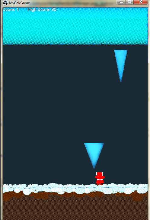 It is now starting to take shape, now we are going to add icicles that spawn from the ceiling and drop at intervals. The first step is to create an Icicle.java class so that we may create an icicle object. We do that by the following: